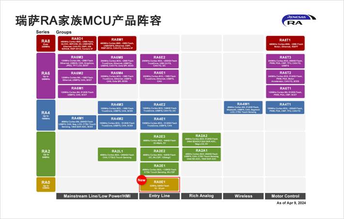 Akihiro Kuroda, Vice President of the Embedded Processing 2nd Division at Renesas表示:“作為嵌入式處理領域的佼佼者,我們的客戶希望瑞薩能面向各類應用打造最優(yōu)的解決方案。RA0E1 MCU產品群可提供價格敏感型系統(tǒng)所需的超低功耗和低成本,同時保持功能安全性、數(shù)據(jù)安全性和設計便捷性。結合我們最近推出的高性能RA8系列,瑞薩現(xiàn)可為全球各地區(qū)的各種客戶應用帶來一流的MCU解決方案!