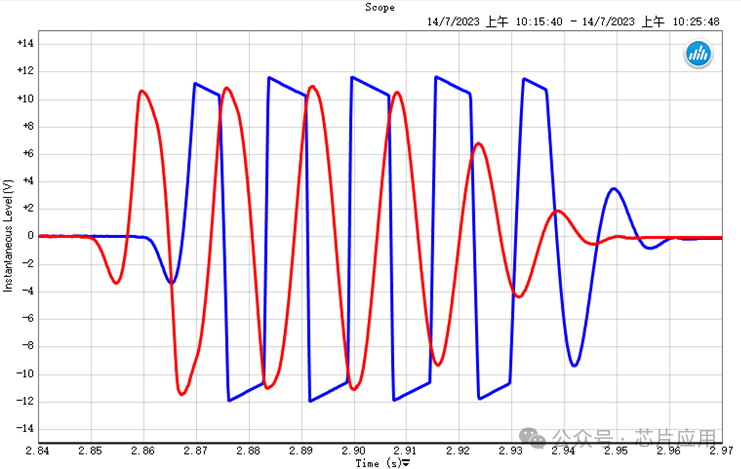 例如下圖,藍(lán)色是傳統(tǒng)DRC(RMS DRC)的瞬態(tài)輸出波形,紅色是RMS+Peak DRC的瞬態(tài)輸出波形。