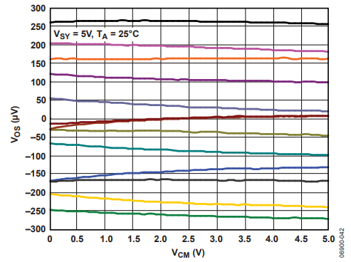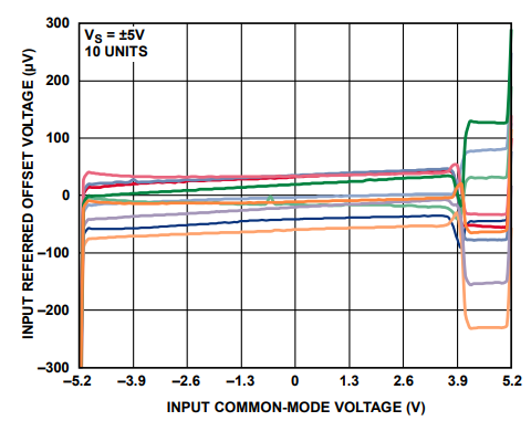 圖6 ADA4807 Vos和輸入共模電壓關(guān)系