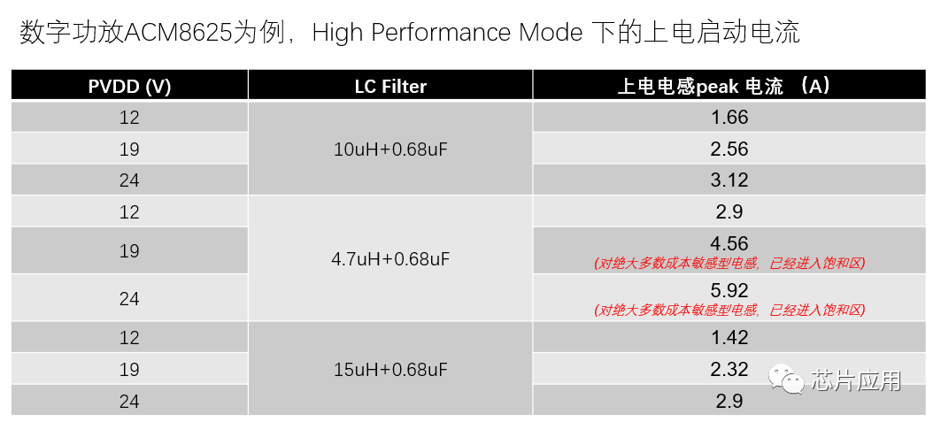 2) 很多情況,輸出的喇叭線上電流可能很小,不到2A,但是由于電感感值選得太小,會出現(xiàn)啟動共模電壓的建立過程就超過2.5A的情況。