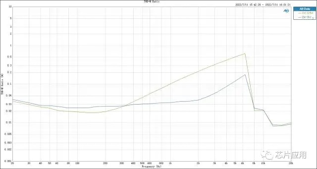 另外在材料上,一體成型和磁封膠對功放性能也有影響,ACM8625為例,相同配置下,只是更換飽和電流差不多,不同材質(zhì)的電感對比THD+N的對比:
