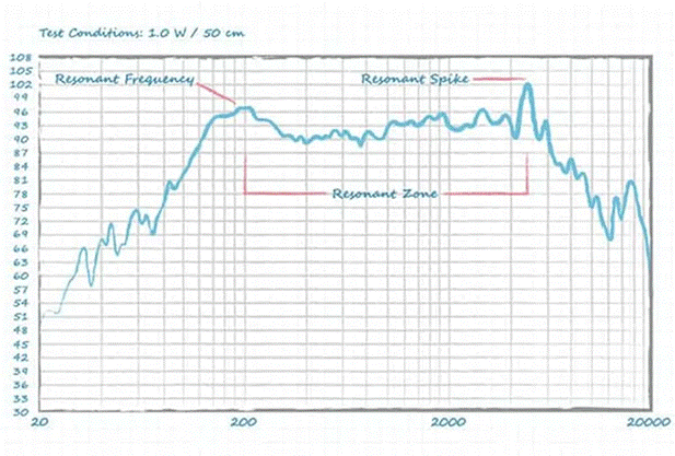 機(jī)械共振的影響因素包括重量,以及將不同質(zhì)量連接在一起的剛度。對于標(biāo)準(zhǔn)揚聲器,這個質(zhì)量就是振膜(或音盆),而剛度則取決于連接振膜和框架的懸架的柔性。由于揚聲器的制造方式多種多樣,每種揚聲器類型都可能產(chǎn)生不同的共振頻率。