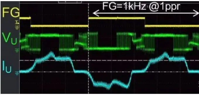 使用的是SVPWM波,輸出的是3相正弦波電壓,電機(jī)相電流為正弦波電流?梢哉J(rèn)為在一個電氣周期內(nèi)進(jìn)行了多次的連續(xù)變化換向,無換相電流突變。正弦波控制相比方波控制,其轉(zhuǎn)矩波動較小,電流諧波少,控制起來感覺比較“細(xì)膩”。