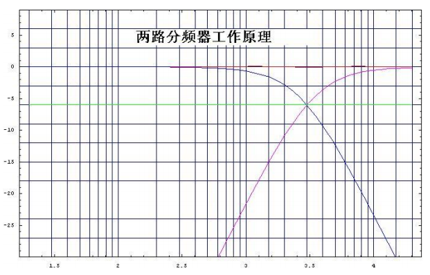 分頻器的主要功能就是將在不同頻域工作的聲源重疊結(jié)合起來(lái)。如圖是兩路分頻器的情況,實(shí)際上是有高通網(wǎng)絡(luò)和低通網(wǎng)絡(luò)組成,兩部份通過(guò)適當(dāng)?shù)南辔魂P(guān)系組合起來(lái),并得到平坦的幅頻響應(yīng),相位關(guān)系決定了高、低通網(wǎng)絡(luò)在結(jié)合部的衰減特性,當(dāng)在結(jié)合部相差為90度的奇數(shù)倍時(shí)(奇數(shù)階的分頻網(wǎng)絡(luò)),各部份聲源可以認(rèn)為完全不相關(guān),此時(shí)結(jié)合部的衰減值為3dB,也就是通常所說(shuō)的3dB 交叉; 當(dāng)在結(jié)合部相差為90度的偶數(shù)倍時(shí)(偶數(shù)階的分頻網(wǎng)絡(luò)),各部份聲源可以認(rèn)為完全相關(guān),此時(shí)結(jié)合部的衰減值為 6dB,就是通常所說(shuō)的6dB交叉。結(jié)合點(diǎn)對(duì)應(yīng)的頻率稱為分頻點(diǎn),分頻點(diǎn)的選擇在揚(yáng)聲器系統(tǒng)中是一個(gè)關(guān)鍵的設(shè)計(jì)決策,它直接影響到音質(zhì)和聽(tīng)感。