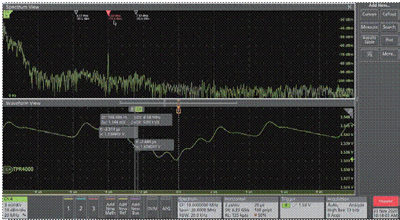 圖7:使用MSO6B和TPR探頭實(shí)測(cè)數(shù)據(jù)中心交換機(jī)芯片的電源紋波和噪聲