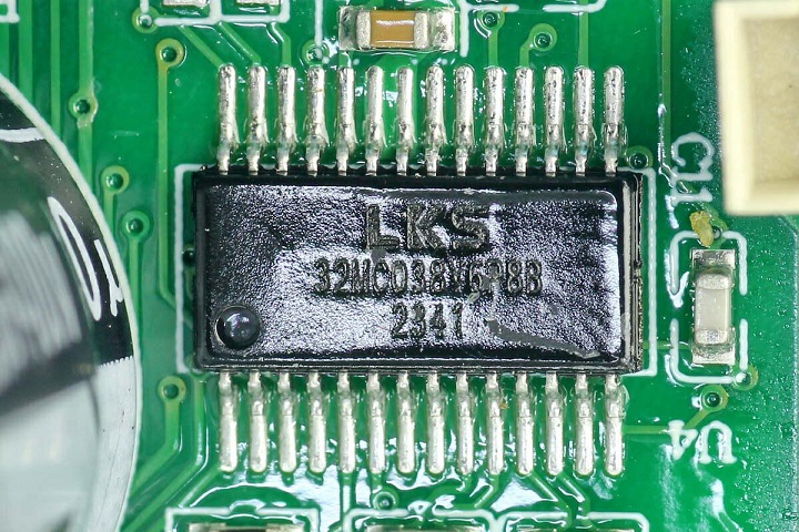 凌鷗創(chuàng)芯LKS32MC038Y6P8B,芯片內(nèi)部集成48MHz 32位 Cortex-M0處理器內(nèi)核,集成三相全橋自舉式柵極驅(qū)動模塊,內(nèi)置32KB FLASH和4KB RAM,采用TSSOP28L封裝。