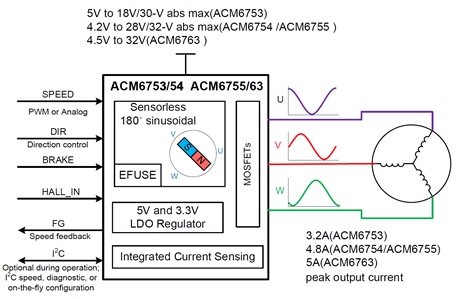 (2)正弦波控制:使用的是SVPWM波,輸出的是3相正弦波電壓,電機(jī)相電流為正弦波電流?梢哉J(rèn)為在一個電氣周期內(nèi)進(jìn)行了多次的連續(xù)變化換向,無換相電流突變。顯然,正弦波控制相比方波控制,其轉(zhuǎn)矩波動較小,電流諧波少,控制起來感覺比較“細(xì)膩”。高集成度一直是集成電路設(shè)計行業(yè)不斷探索的目標(biāo)。就電機(jī)驅(qū)動控制專用芯片而言,如果單顆芯片能集成更多的器件和功能,則其應(yīng)用于具體下游產(chǎn)品時,可大大簡化外圍電路、減少外圍器件,更好地滿足終端應(yīng)用需求,實(shí)現(xiàn)降本增效,提升整體方案的可靠性。深圳市永阜康科技有限公司致力于內(nèi)置MOS+預(yù)驅(qū)+算法、全集成三相直流無刷電機(jī)驅(qū)動芯片的推廣,全系列產(chǎn)品系列外圍僅需幾個阻容,選型列表如下: