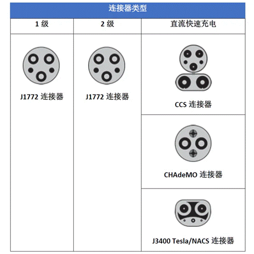 就像我們有不同的充電機(jī)級(jí)別來(lái)區(qū)分功率級(jí)別一樣,充電機(jī)所使用的連接器也有不同的標(biāo)準(zhǔn)。