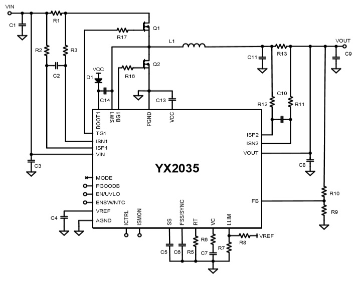 YX2035是一款同步降壓控制器,適用于驅(qū)動(dòng)高效功率轉(zhuǎn)換器中的硅(Si)MOSFET 或氮化鎵(GaN) 功率晶體管。它支持高達(dá)35V的寬輸入范圍,最高能效為98%。YX2035集成了具有UVLO保護(hù)功能的高端和低端柵極驅(qū)動(dòng)器。它提供可編程輸入/輸出電流限制、負(fù)載電流監(jiān)控和電源良好報(bào)告。 CC/CV功能使其適用于電池充電應(yīng)用。