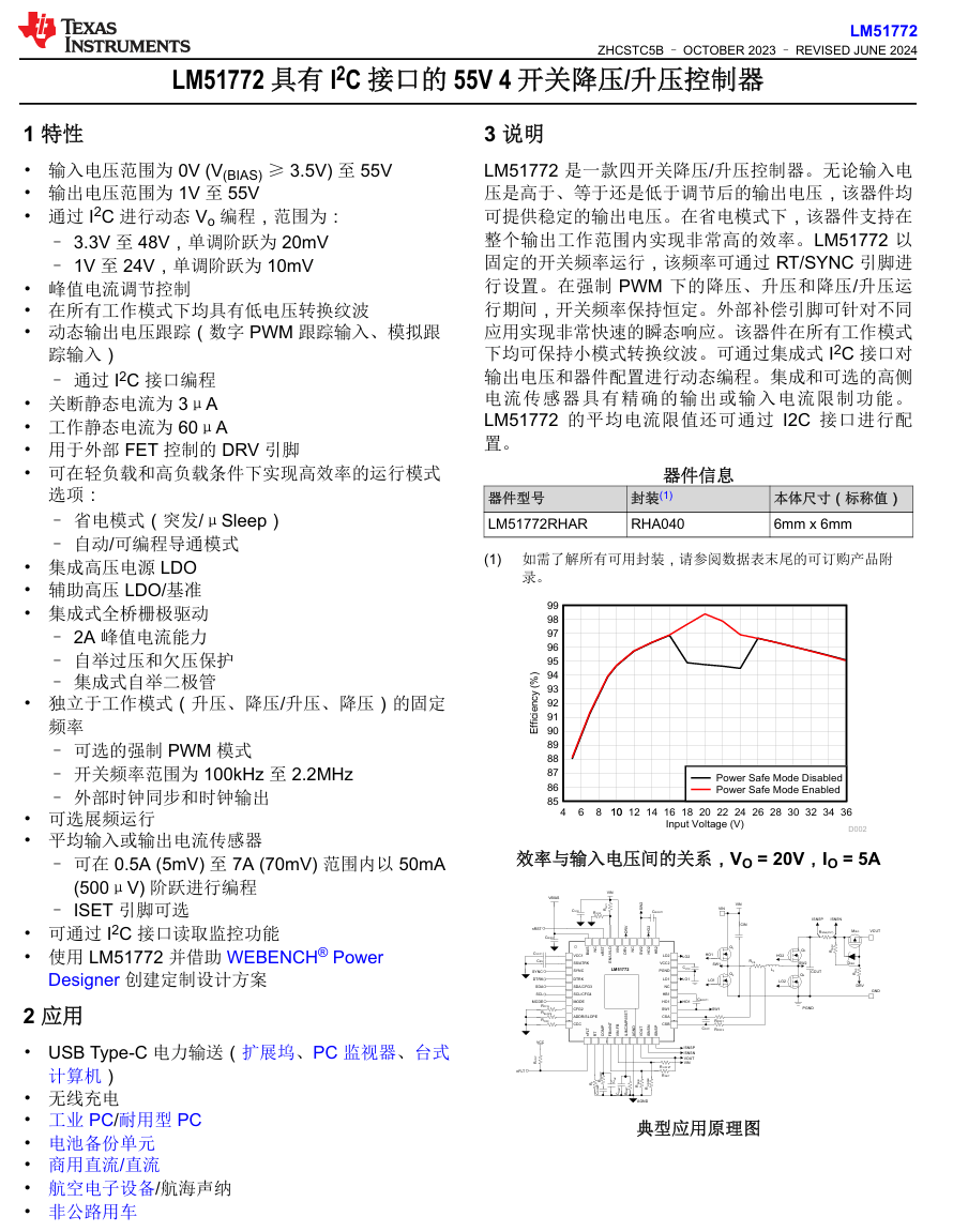 LM51772 的主要特點(diǎn)包括集成高電壓 LDO、支持自適應(yīng)過流和欠壓保護(hù),以及 2A 的柵極驅(qū)動(dòng)電流能力,確保其適用于大功率電源管理場(chǎng)合。該芯片具有 I²C 可編程功能,允許精確控制動(dòng)態(tài)輸出電壓和優(yōu)化效率。同時(shí),它還具備多種模式選擇,包括 PWM 模式和輕載高效的睡眠模式,以適應(yīng)不同應(yīng)用需求,最大限度地提高能效并降低功耗。