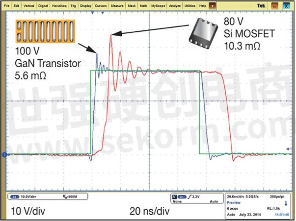 D類放大器的功率級(jí)目標(biāo)是實(shí)現(xiàn)小信號(hào)源的精確大信號(hào)復(fù)制,同時(shí)減少熱量耗散;贕aN的FET和IC更優(yōu)異的開關(guān)和熱性能產(chǎn)生的波形比硅MOSFET所能達(dá)到的波形更接近所需的理想波形。