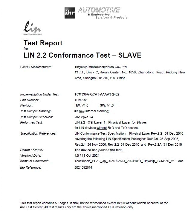 滿足LIN 2.x/SAE J2602 and ISO17987-4協(xié)議
