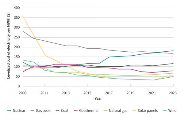 如今,可再生能源發(fā)電約占全球電力生產(chǎn)的30%。在STEPS情景中,這一比例預(yù)計(jì)將提高到70%,在NZE情景中,將提高到89%[2]。近年來(lái),低碳化的努力已經(jīng)初顯成效——在過(guò)去15年,可再生能源已從最昂貴的能源變?yōu)樽罱?jīng)濟(jì)的選擇[3]。