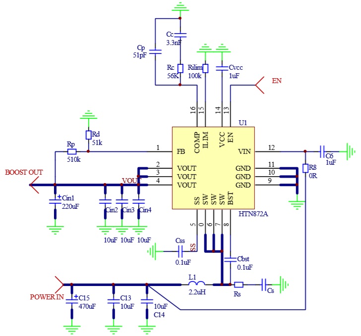 HTN872A具有2.7V至20V寬輸入電壓范圍, 可為采用單節(jié)或兩節(jié)鋰電池的應(yīng)用提供支持。 該器件具備20A開關(guān)電流能力,并且能夠提供20V的輸出電壓。