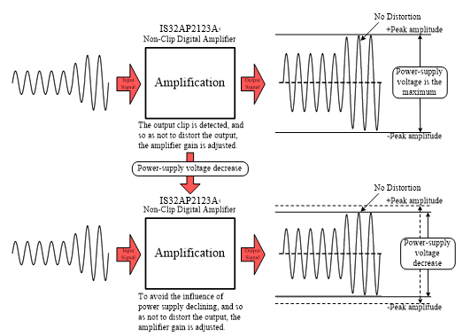 自動(dòng)增益控制(AGC): IS32AP2123A創(chuàng)新的自動(dòng)增益控制功能(AGC),可根據(jù)不同揚(yáng)聲器型號(hào)限制輸出功率,以防止揚(yáng)聲器因功率過大而受損。當(dāng)輸出功率超過選定的功率限制水平時(shí),自動(dòng)增益控制(AGC)功能將被激活,放大器的增益會(huì)降低,從而使輸出功率回到限制值以下。相比其他廠家產(chǎn)品簡單的輸出功率限制功能不同,IS32AP2123A的AGC控制功能在限制功率的同時(shí),不會(huì)導(dǎo)致輸出音頻信號(hào)出現(xiàn)削波,音質(zhì)不會(huì)受到影響。