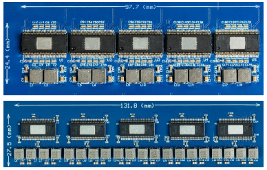 圖 2:一個 20 通道的汽車音響系統(tǒng)設計,采用五個 TAS6754-Q1 D 類放大器,與 TI 的 TAS6424E-Q1 D 類放大器進行比較