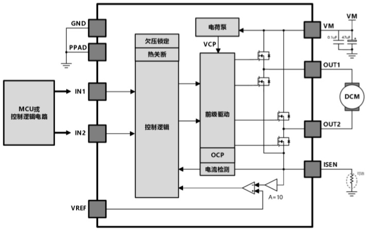 HTD8238是一款直流有刷電機驅(qū)動器,能夠以高達7A的峰值電流雙向控制電機。利用電流衰減模式,可通過對輸入信號進行脈寬調(diào)制(PWM)來控制電機轉(zhuǎn)速,同時具備低功耗休眠模式。