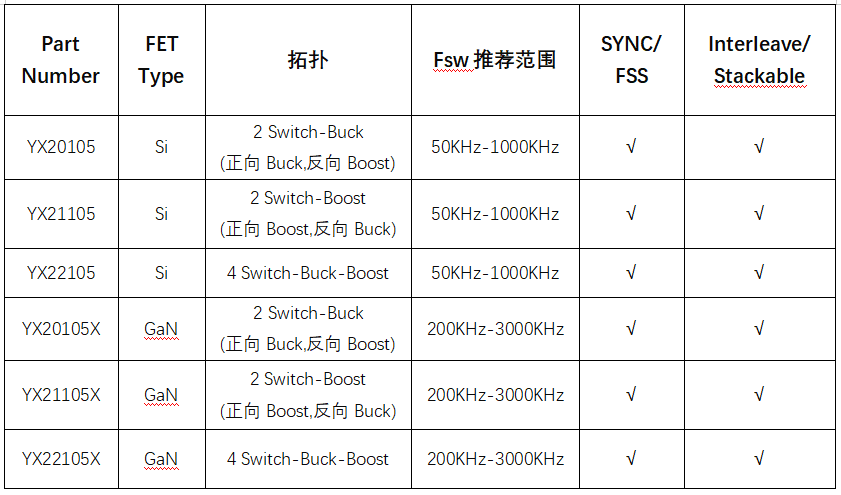 YX22105系列包括升壓,降壓,升降壓,以及GaN應(yīng)用優(yōu)化等各種版本,為各個(gè)應(yīng)用場景提供最優(yōu)解決方案。