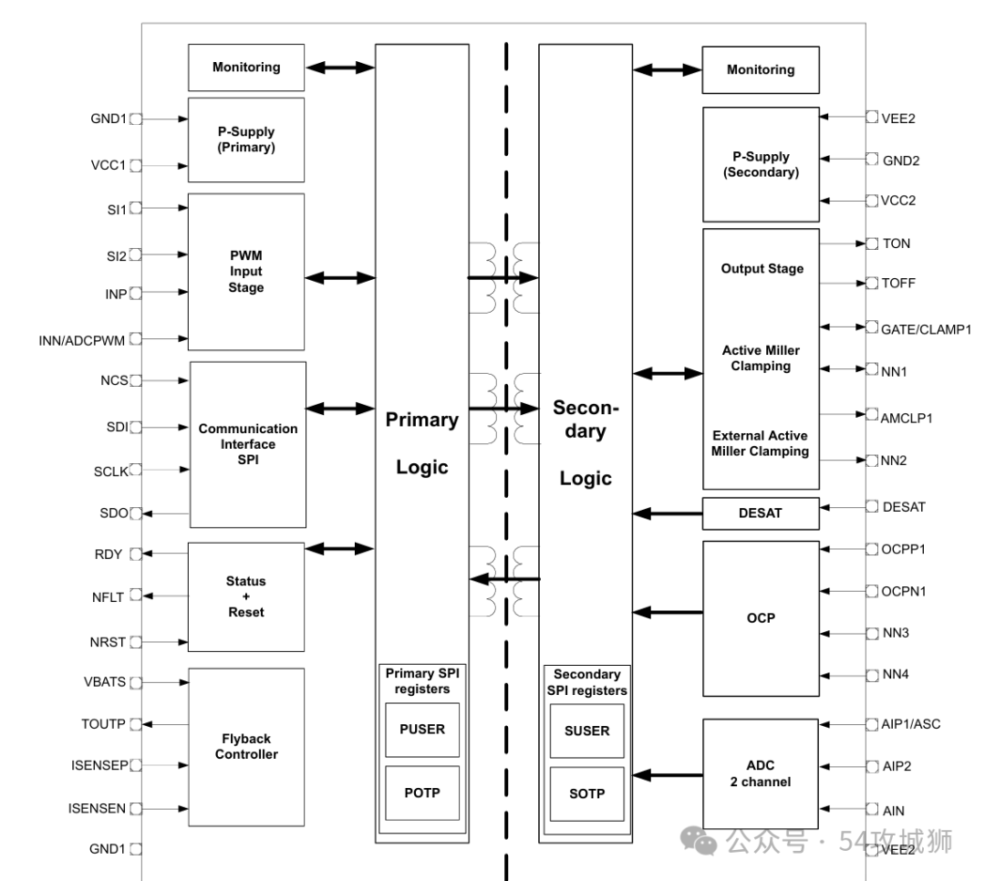 7.原副邊隔離。一般是磁隔離和容隔離,ST和TI容隔產品居多,其他廠家磁隔離較多。磁隔離的抗干擾性更強,但是成本相對更高。