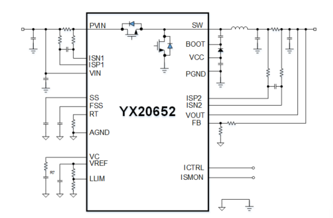 YX20652 是一款全集成MOS的高效同步降壓轉(zhuǎn)換器,其輸入電壓范圍可達4V至60V,最大輸出電流可達12A,最高效率可達97%。得益于MOS管全集成化設(shè)計,YX20652大幅簡化了轉(zhuǎn)換器的外圍電路,使得整板體積更小,功率密度更高,系統(tǒng)成本進一步降低。此外,該產(chǎn)品還具備并聯(lián)錯相功能,方便功率擴展的同時,有效降低了輸出紋波,提升了系統(tǒng)的穩(wěn)定性和可靠性。