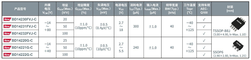 ROHM還提供適用于工業(yè)設(shè)備應用的電流檢測放大器“BD1421x-LA”。
