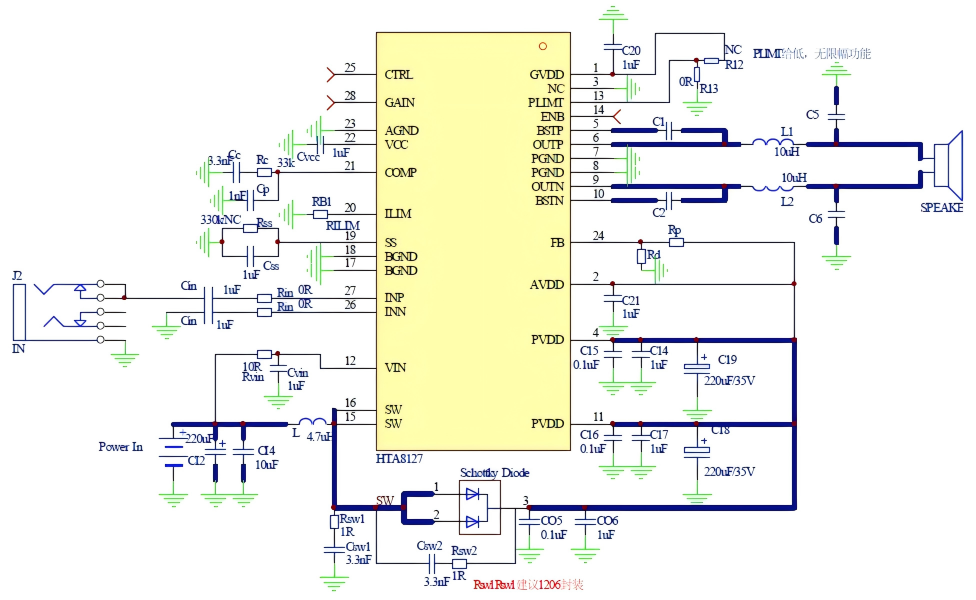 | HTA8127 內置升壓的77W單聲道D類音頻功放芯片 |