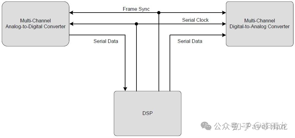 - • 把模擬麥克風(fēng)采集的音頻數(shù)據(jù)經(jīng)過(guò)AD轉(zhuǎn)換以后得到的數(shù)字音頻數(shù)據(jù),通過(guò)數(shù)字音頻接口傳輸給DSP進(jìn)行進(jìn)一步的處理。