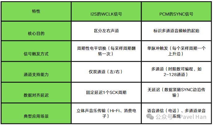 - • PCM_SYNC(幀同步):由主設(shè)備生成和控制,標(biāo)識(shí)音頻幀的起始位置,頻率等于采樣率。