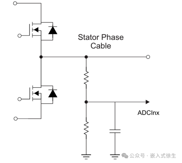 過零檢測,無感控制的常用策略是通過檢測反電動勢的變化,判斷無刷電機(jī)的轉(zhuǎn)子位置,如圖所示為無感控制的反電動勢檢測電路。
