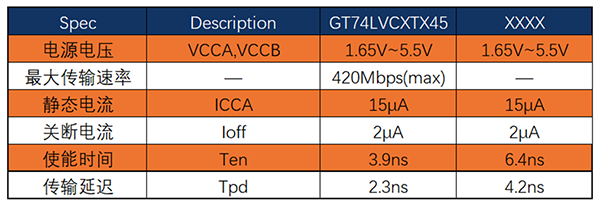 GT74LVCXTX45系列包括一路,二路,四路,八路和十六路收發(fā)器,是具有可配置電平轉(zhuǎn)換的雙電源總線收發(fā)器。最大傳輸速率可達(dá)到420Mbps,滿足高速數(shù)據(jù)傳輸要求。該收發(fā)器使用兩個(gè)獨(dú)立的電源軌,VCCA和VCCB的工作電壓范圍為1.65V至5.5V,支持寬電壓輸入。A端口參考VCCA,B端口參考VCCB,可以在1.8V、2.5V、3.3V和5.5V電壓節(jié)點(diǎn)之間實(shí)現(xiàn)通用低壓雙向轉(zhuǎn)換。具備VCC隔離特性,當(dāng)任一VCC輸入端處于接地狀態(tài),則所有輸入端均處于高阻抗?fàn)顟B(tài)。A端口和B端口的輸入電路始終處于激活狀態(tài),并具有邏輯高電平或邏輯低電平,以防止出現(xiàn)過(guò)多的ICC和ICCZ。GT74LVCXTX45的控制引腳由VCCA供電。該芯片的工作范圍為-40℃~125℃。