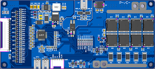 SoC計算,充放電功率通路和可選的BT/WiFi通信和RS-485通信。該BMS方案將電池組單體電壓、電流、溫度進(jìn)行實時監(jiān)控并上報用戶,并根據(jù)用戶設(shè)定的保護(hù)參數(shù)進(jìn)行自我控制,在電池組工作異常的情況下及時關(guān)斷充放電。該方案通用性比較強,可以根據(jù)用戶需求,在10~17串范圍內(nèi)電池串?dāng)?shù),采用低邊驅(qū)動同口設(shè)計方案,充放電電流高達(dá)60-80A,兼容NCM、LFP等鋰電池。