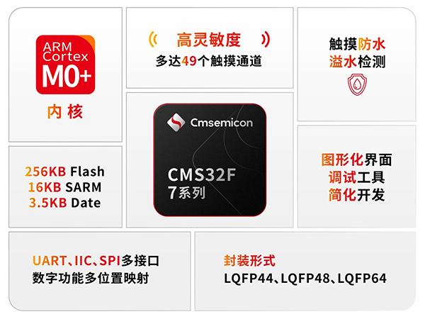 CMS32F759/737系列定位“大資源、高性能、高可靠性”,芯片集成多種資源,有助于降低系統(tǒng)設(shè)計成本,其發(fā)布標(biāo)志著中微半導(dǎo)在32位觸控技術(shù)領(lǐng)域的重大突破。