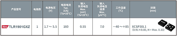 新產(chǎn)品通過采用引腳間距縮小至0.35mm的WLCSP*1封裝,實(shí)現(xiàn)1mm²以下的超小尺寸,同時(shí)兼具超低靜態(tài)電流特性,工作時(shí)的電路電流可控制在業(yè)界超低的160nA(Typ.)。由此,該新產(chǎn)品不僅能在有限的空間內(nèi)實(shí)現(xiàn)高密度安裝,還能大大延長(zhǎng)電池壽命和應(yīng)用產(chǎn)品的續(xù)航時(shí)間。