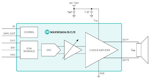 隨著音頻接口迅速成為電池供電的可穿戴設備、物聯(lián)網(wǎng)設備和其他類型的小型便攜式電子設備的普遍功能,設計人員正在尋找更簡單、更具成本效益的方法來為其設備添加高質(zhì)量音頻。在此設計解決方案中,我們回顧了將某些D類放大器集成到空間受限應用中的困難。我們可以得出結論,新一代靈活的低功耗數(shù)字輸入D類音頻放大器為將音頻集成到任何類型的電子設備中的任務帶來了“即插即用”的簡單性,使其成為便攜式設備,可穿戴設備和物聯(lián)網(wǎng)設備的理想選擇。MAX98360除采用9引腳WLP封裝外,還提供10引腳FC2QFN封裝。 |