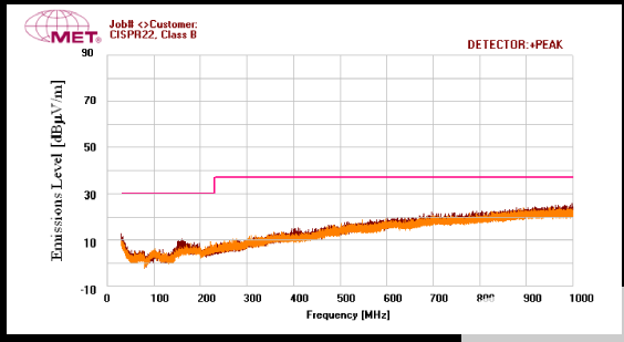 圖5.MAX98360 EMI性能,采用12in.帶狀線負載。