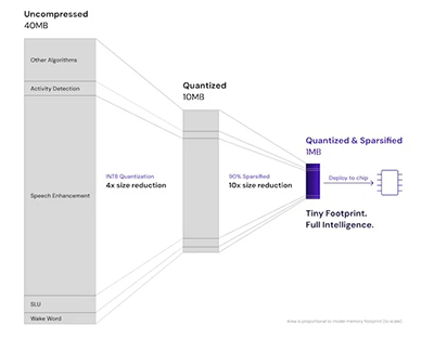 耳機(jī)人工智能應(yīng)用棧的壓縮。90% 的稀疏性可使內(nèi)存占用減少 10 倍,而精度或性能幾乎不下降。