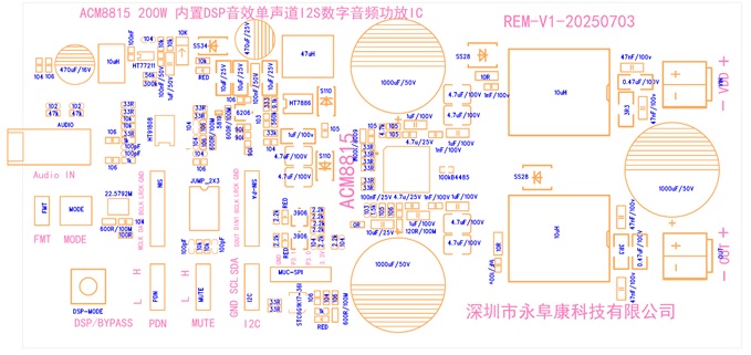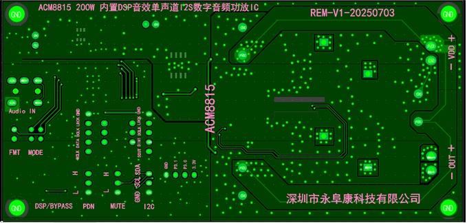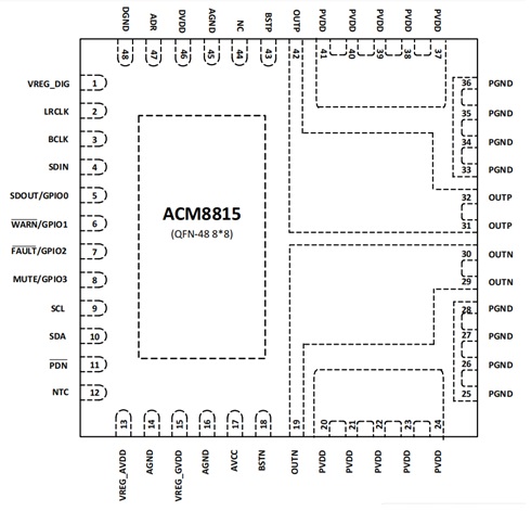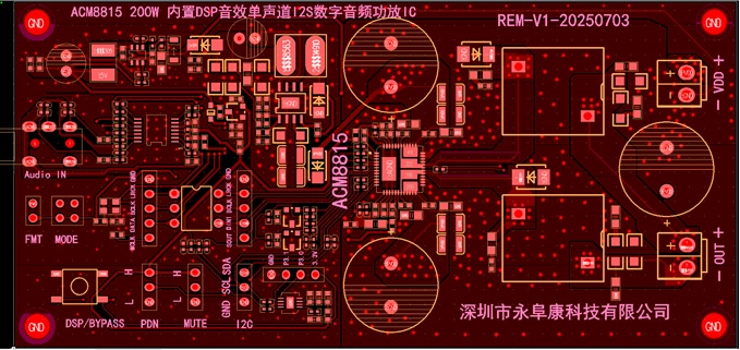 深圳市永阜康科技有限公司一直專注于音頻領(lǐng)域的耕耘,現(xiàn)在大力推廣內(nèi)置DSP的200W單聲道大功率I2S數(shù)字輸入D類功放芯片-ACM8815,助推音頻產(chǎn)品升級迭代。ACM8815是一款集成MOSFET,高效、高性能具有數(shù)字輸入的單聲道D類音頻放大器。外圍應(yīng)用電路只需要很少的無源元件,4.5V-38V寬泛工作電壓范圍。集成了11mΩRdson-MOSFEET,驅(qū)動到4Ω可以在10%THD+N內(nèi)輸出1×200W的功率,高效率保證大功率輸出不需要散熱器。采用QFN-48(8.0mm×8.0mm)封裝。