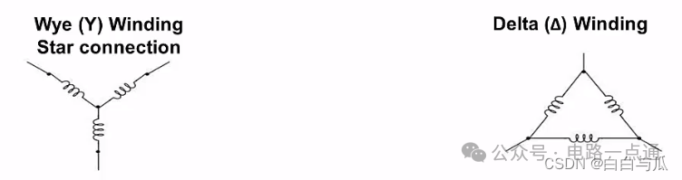 Delta型繞組電機(jī)在低速時(shí)提供低扭矩(Lower torque at low speed),但可以提供更高的最高速度(Higher top speed);Y型繞組在低速時(shí)可提供高扭矩(Higher torque at low speed),但最高速度不高(Lower top speed)。Delta型繞組結(jié)構(gòu)允許含有奇次諧波電流在電機(jī)內(nèi)循環(huán),而Y型繞組并不包含寄生電流可流動(dòng)的閉環(huán)結(jié)構(gòu)(Immune to parasitic currents),從而防止額外損耗,故Y型繞組效率更高。除了Y型繞組較高阻抗外,從控制器的角度來(lái)看,不管是Y型還是Delta型連接,電機(jī)的驅(qū)動(dòng)方式都是一樣的。