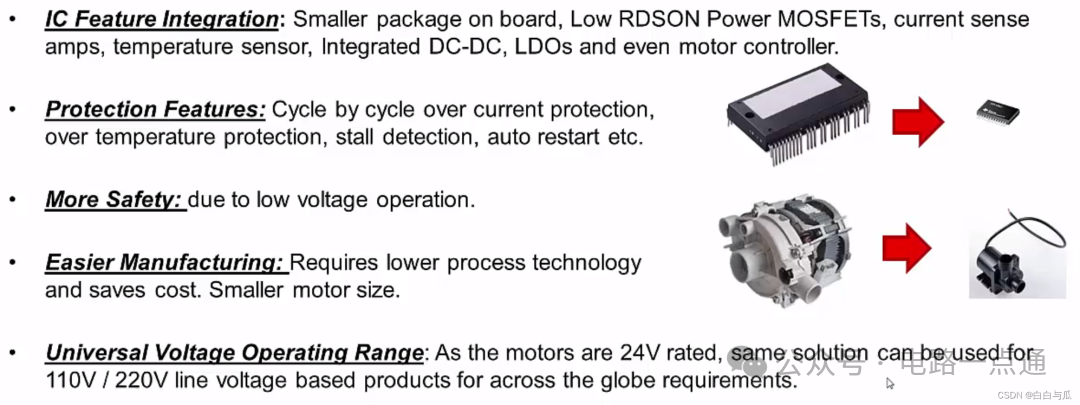 - 通用電壓工作范圍: 由于電機(jī)額定電壓為 24V,同樣的解決方案可用于 110V / 220V 線電壓產(chǎn)品,滿足全球各地的需求。