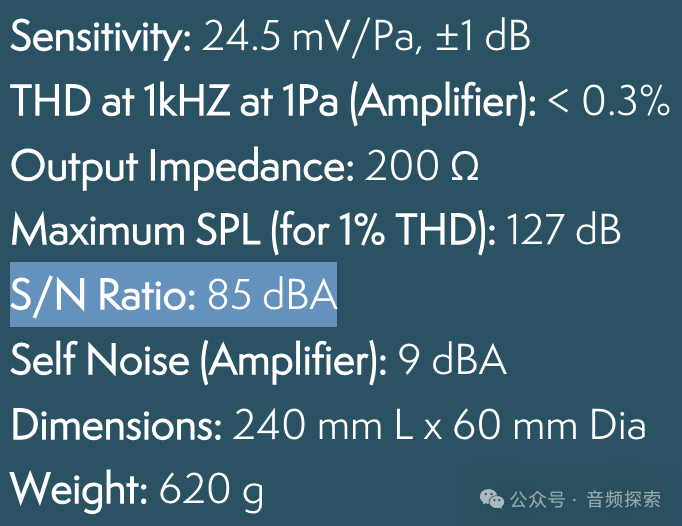 例如,Telefunken U47的信噪比是85dBA,那么它的自噪聲就是94–85=9dBA。