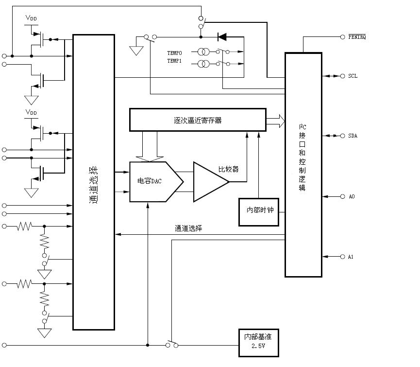 包含了一個內部2.5V的基準電路,該基準可以應用在備選輸入測量, 電池監(jiān)測, 和溫度測量模式中。在掉電模式下,基準關閉以降低功耗。當在0.5V 到6V的范圍內監(jiān)測電池電壓時,電源供電低至2.7V,內部基準仍可工作。