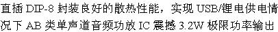 單節(jié)鋰電雙聲道3W失真1%這個功率區(qū)間最具性價比的選擇 |