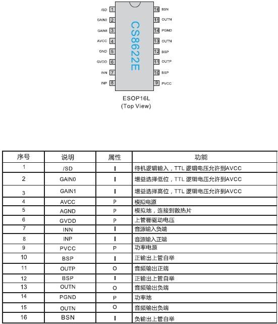 擴(kuò)頻功能、低空載電流、40倍增益、免濾波、2X23W/33W(PBTL) D類音頻放大器 |