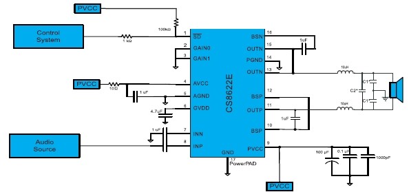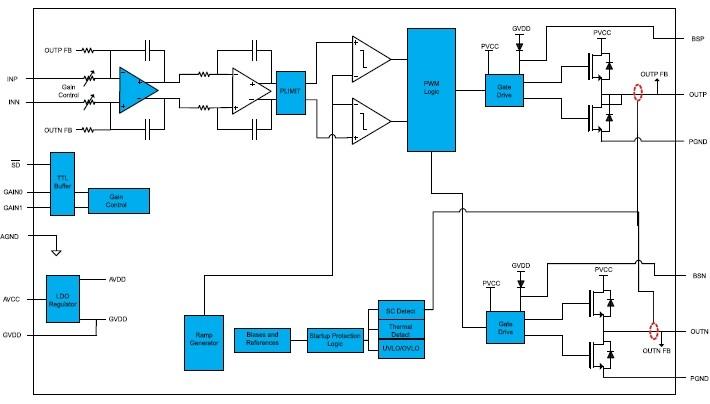 內(nèi)置升壓的30W立體聲D類音頻功放 |