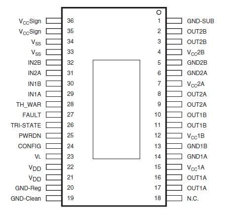 The STA510F is a monolithic, quad, half-bridge