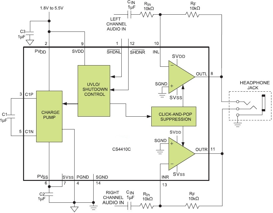 差分輸入、支持大動(dòng)態(tài)信號(hào)輸出、超低靜態(tài)功耗5μVRMS超低底噪, 400mW單聲道高性能音頻驅(qū)動(dòng)芯片 |