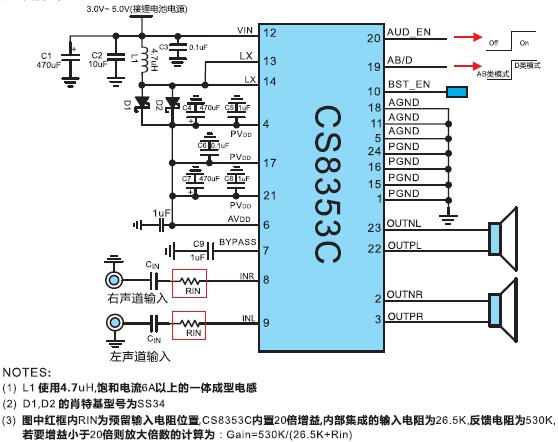 內(nèi)置BOOST升壓的2×5.5W立體聲音頻功率放大器 |