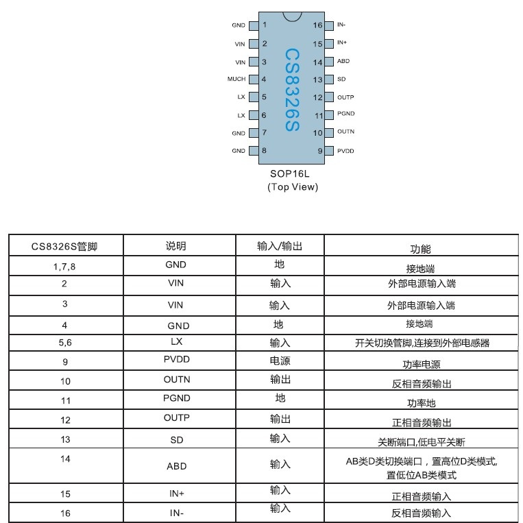 固定20倍增益,內置BOOST升壓模塊,帶防破音以及AB/D切換功能,恒定10.7W輸出 功率R類單聲道音頻功率放大器 |