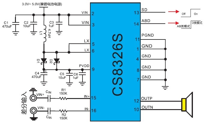 內置BOOST升壓的2×5.5W立體聲音頻功率放大器 |