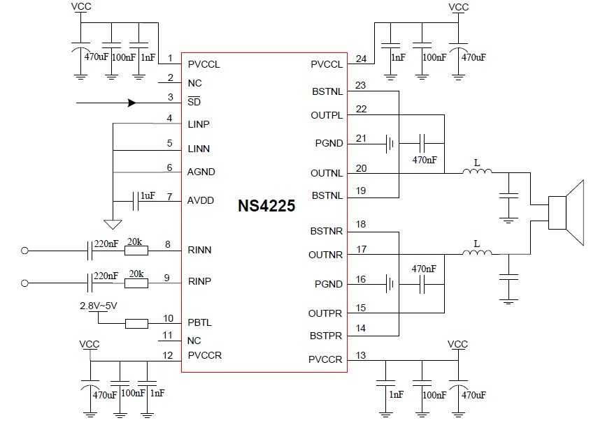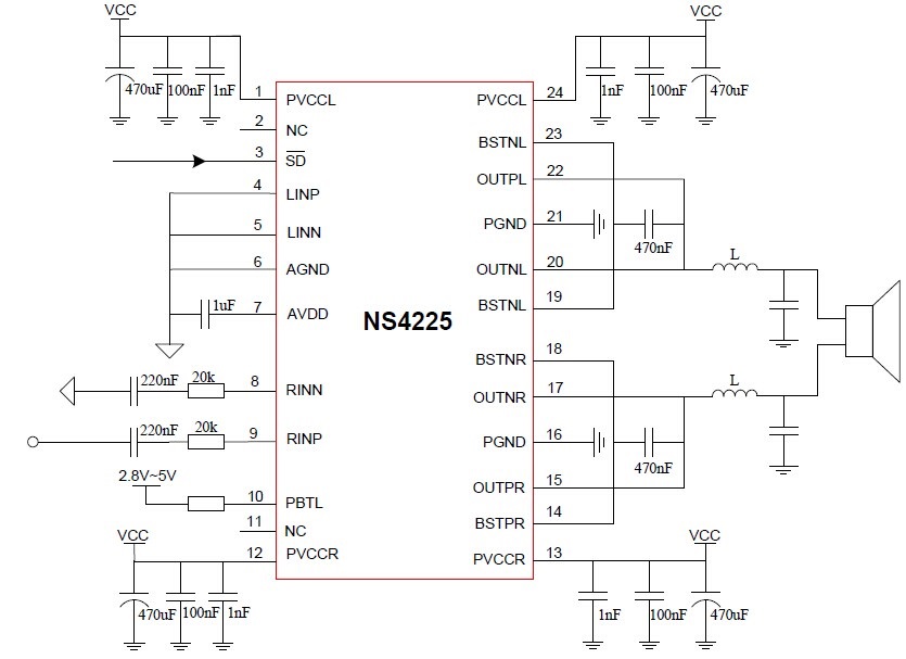 當(dāng)前位置:首頁->產(chǎn)品展示->功放IC->NS4225(雙聲道2X25W、單聲道50W、D類音頻功放IC) |